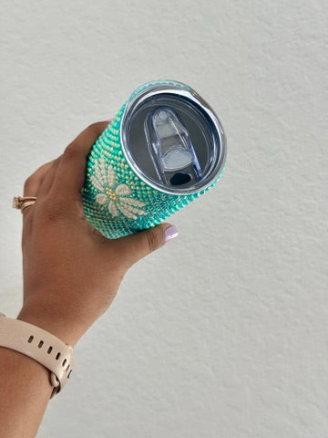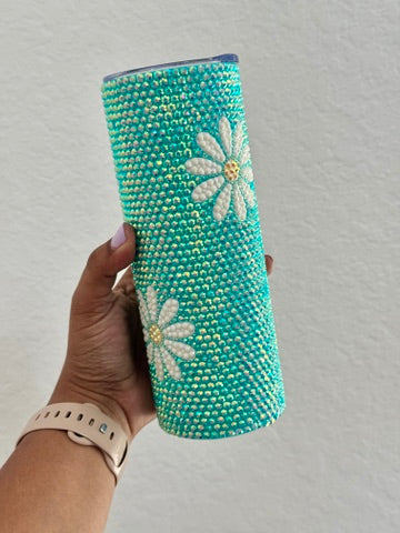 Each rhinestone is individually placed by hand for each design on an 20 oz stainless steel tumbler.